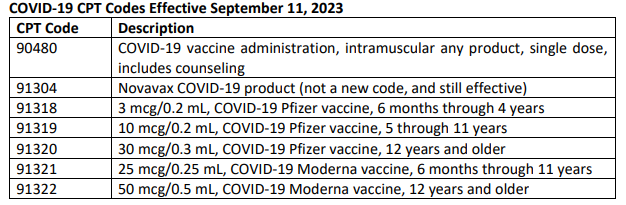 The AMA, in August 2023, approved new vaccine product codes and deleted over 45 previously approved ones to streamline the coding for COVID-19 vaccines. This follows the Vaccines and Related Biological Products Advisory Committee decision that COVID-19 vaccinations be updated annually. In addition, the AMA created one administration code to be used with any vaccine for any patient, regardless of patient age, thereby replacing all previously issued administration codes. The effective date of the new codes coincides with the FDA approval date of September 11, 2023.